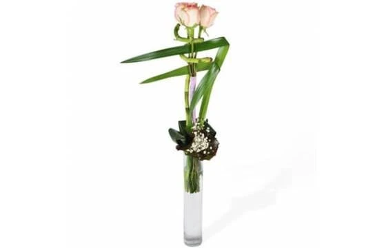 Cette originale création florale a été imaginée par l’un de nos partenaires artisans fleuristes souhaitant exprimer la tendresse venant de la rose et en particulier la rose rose. Et la chance, qui nous vient de tradition chinoise où le bambou lucky est offert pour porter bonheur lors d’événements heureux tels que les mariages et les naissances. Un bouquet de fleurs également très apprécié en remerciement ou, de par l’allure du bambou et sa durée de vie, en fait une idée cadeau fleurie idéale pour décorer un intérieur.