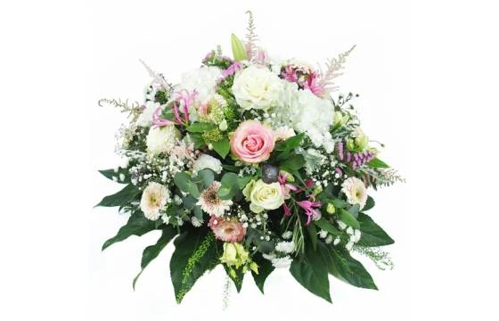 Détail du coussin : Coussin de fleurs piquées pour obsèques, deuil dans les tons pastels. Cette création florale réalisée par un artisan fleuriste local est composée de rose, gerbera (ou germini), lisianthus, lys, hortensia, fleurette de saison et feuillage champêtre. Du feuillage structuré est ajouté à la base. (Fleurs variables selon les saisons et la disponibilité en magasin tout en gardant l’esprit, la forme et les couleurs)(Ref Florale : 9318 – Vénus). Visuel non contractuel – Visuel correspondant à la formule Meilleur Compromis – Non compatible avec une crémation.